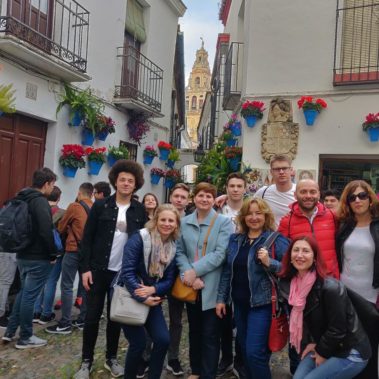 Czwarte spotkanie projektowe w ramach działań związanych z uczeniem się, nauczaniem i szkoleniami odbyło się w dniach od 31 marca do 6 kwietnia 2019 roku w Villafranca de Cordoba w Hiszpanii. Oficjalne powitanie rozpoczęła Pani Dyrektor krótkim przemówieniem do zebranych gości i społeczności szkolnej. W części artystycznej uczniowie szkoły zaprezentowali Odę do Radości zagraną na fletach. Następnie uczestnicy, podzieleni na grupy, zostali oprowadzeni po szkole i po miasteczku. Uczestnicy w grupach międzynarodowych zostali ugoszczeni w przez hiszpańskich uczniów w ich rodzinnych domach. To pozwoliło zintegrować tę międzynarodową grupę i otworzyć ją na dalsze działania projektowe. Aby zapoznać nas z ofertą kulturową regionu, gospodarze przygotowali wycieczki do Kordoby i Sewilli. Mieliśmy okazję zobaczyć historyczną część Kordoby, a w szczególności jej największą atrakcję meczet – La Mezquita. Organizatorzy przygotowali wizytę w lokalnej szkole teatralnej, podczas której zobaczyliśmy próbę spektaklu, pracownie kostiumów i scenografii. Kolejną atrakcją była wycieczka do Sewilli z jej największymi zabytkami – Real Alcazares, Katedrą i Parkiem Marii Luizy.