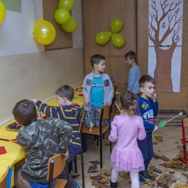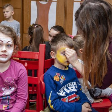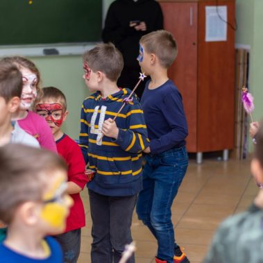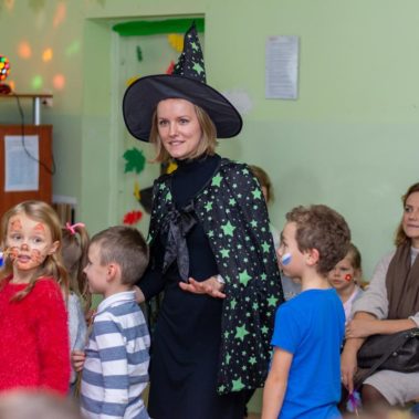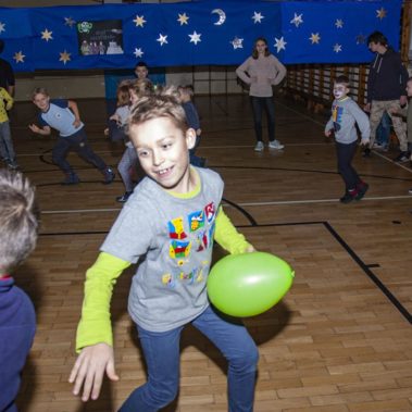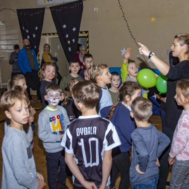 Podczas gdy w pracowniach zawodowych młodzież wykonywała zadania specjalne pod okiem Harrego Pottera, młodszych gości zaproszono do zabawy w cieniu Magicznego Drzewa. Zgodnie z legendą, powalony przez burzę w Dolinie Warty dąb, został przerobiony na przedmioty posiadające niezwykłą moc. Dzieci miały okazję przekonać się o tym na własne skórze zasiadając na czerwonych krzesłach i oddając w ręce wybitnych wróżek wyczarowujących na ich twarzach zgodne z życzeniami malunki. Kolorowy makijaż świetnie prezentował się na leśnym party zorganizowanym w języku angielskim. Wesołe tańce i zabawy w pięknej scenerii lasu z pewnością rozpaliły w uczestnikach zapał do nauki tego języka. W skocznych pląsach odbyła się również rozgrzewka przed zajęciami plastycznymi w zamieszkałym przez chomiczka warsztacie, gdzie młodzi artyści tworzyli z drewna magiczne różdżki i ławeczki. Wielką frajdę zapewnił najmłodszym Berek Czarodziej władający tego wieczoru salą gimnastyczną. Z nie lada łamigłówką dzieci zmierzyły się w sali, w której zamiast żołędzi i liści, z gałązek Magicznego Drzewa spadały zadania i zagadki. Widowiskowe i pachnące czary odprawiono w pracowni chemicznej przearanżowanej tego dnia na bajeczną wytwórnię mydełek.
