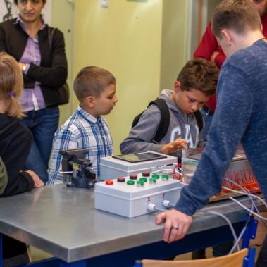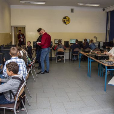 Po wkroczeniu do stworzonej przez elektroników chatki półolbrzyma Hagrida, młodzi czarodzieje zostali poinformowani o zasadach panujących w „Zakazanym Lesie”. Następnie wykorzystując przedziwne różdżki, otrzymane od brodatego strażnika, rozwiązywali zagadki ukryte w ciemnym i pełnym tajemnic gaju. Pomyślne wykonanie budzących napięcie zadań pozwalało im uniknąć ataku strasznego pająka Aragoga. Niemniej elektryzujących wrażeń nastolatkowie doznali podczas spotkania z elektrykami, którzy w swojej pracowni stworzyli niepowtarzalny klimat za pomocą świetlnych improwizacji. Uczniowie szkół podstawowych w locie chwytali nie tylko ciekawostki dotyczące inteligentnych domów, ale także słodkie niespodzianki i kolorowe balony. Od zaklęć i eksperymentów zakręcić się mogło w głowie również podczas wizyty u energetyków prezentujących młodszym kolegom tajemne działanie modelu układów elektronicznych oraz maszyny napędzanej ciepłem. Wystrzałową atmosferę uzyskano tam doprowadzając do startu rakietę za pomocą mieszanki z sody oczyszczonej i octu oraz uruchamiając latarkę bez źródła zasilania. Od emocji zahuczało także podczas zabawy z tekturowymi kostkami rozegranej z udziałem śnieżnej sowy Hedwigi. Z prawdziwym sztukmistrzostwem żądni niecodziennych przeżyć odkrywcy spotkali się w komnacie informatyków zachęcających ich do eksplorowania zagadkowej skrzynki oraz rozbiórki sprzętów IT kryjących w sobie części Potterowej układanki. Dodatkową atrakcją było rysowanie postaci z powieści J. K. Rowling przy użyciu tabletów graficznych oraz przeprowadzanie przez tor przeszkód robota Lego za pomocą smartfona. Swój urok na gości rzucili także automatycy prezentując sterowane falownikami silniki oraz zapraszając do umysłowej rozrywki przy panelu z przyciskami działającymi dzięki sterownikom Mitsubishi. Chwili wytchnienia od technologicznych nowinek można było zaznać udając się na wystawę zabytkowych pojazdów przygotowaną przez ich właściciela i restauratora Michała Startka z 2T4, który podzielił się ze zwiedzającymi zaklętym w pasji przepisem na barwne i ciekawe życie.