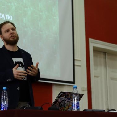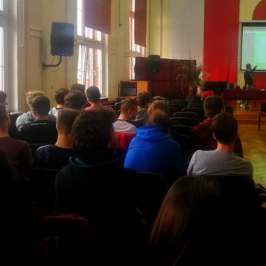 W poniedziałek, 18 listopada, uczniowie marzący o karierze w obszarze IT wzięli udział w wydarzeniu pod hasłem „Zawodowa łamigłówka – od pomysłu do sukcesu!” zorganizowanym przez Stowarzyszenie VIDA ARTIS w ramach Światowego Tygodnia Przedsiębiorczości. Młodzi informatycy wysłuchali wykładu motywacyjnego wygłoszonego przez doradcę zawodowego, p. Macieja Barczaka, oraz uczestniczyli w spotkaniu z projektantem gier komputerowych, p. Mikołajem Kamińskim. Prelegenci, reprezentujący blok tematyczny „MeetGame”, odwoływali się do własnych doświadczeń oraz inspirujących życiorysów osób, które odniosły sukces w branży informatycznej. Przedstawiciel CDZDM zachęcał młodzież do determinacji w realizowaniu celów edukacyjno-zawodowych oraz odważnego podążania za marzeniami. Najlepszym przykładem na to, że warto działać w zgodzie z zainteresowaniami i pasją, było wystąpienie wspomnianego twórcy gier video posługującego się pseudonimem „Sos Sosnowski”. Swoje pierwsze kroki w programowaniu stawiał on jako nastoletni samouk, pracując na domowym komputerze z lat 80 – tych – Commodore 64. Z czasem zaczął tworzyć coraz bardziej zaawansowane gry na coraz to nowocześniejszym sprzęcie, traktując tę aktywność wyłącznie hobbystycznie. W związku z tym, że po liceum nie dostał się na oblegane studia informatyczne, rozpoczął naukę w kolegium językowym. Po ukończeniu studiów pedagogicznych pracował w szkole jako nauczyciel angielskiego. Pasja tworzenia gier nie dawała jednak o sobie zapomnieć, doprowadziwszy go w końcu do decyzji o rezygnacji z posady belfra i całkowitym zaangażowaniu się w projektowanie gier. Uczniowie z entuzjazmem czerpali inspirację, dając się wciągnąć w rozmyślania dotyczące własnych pomysłów na zawodowe życie.