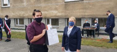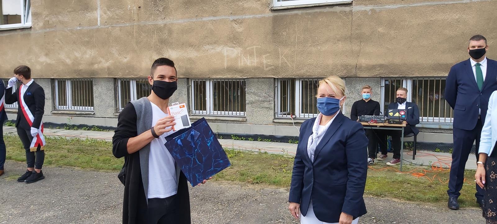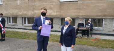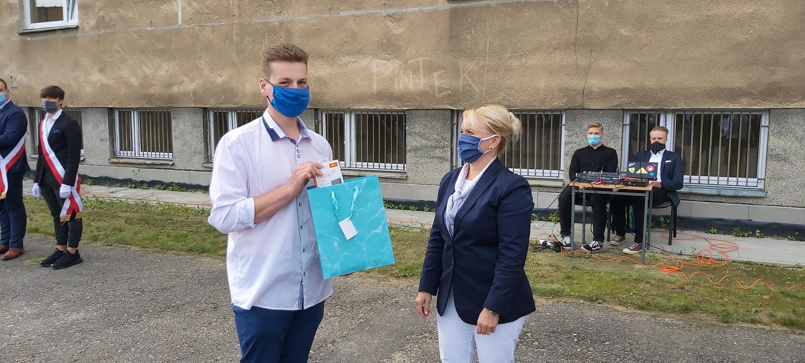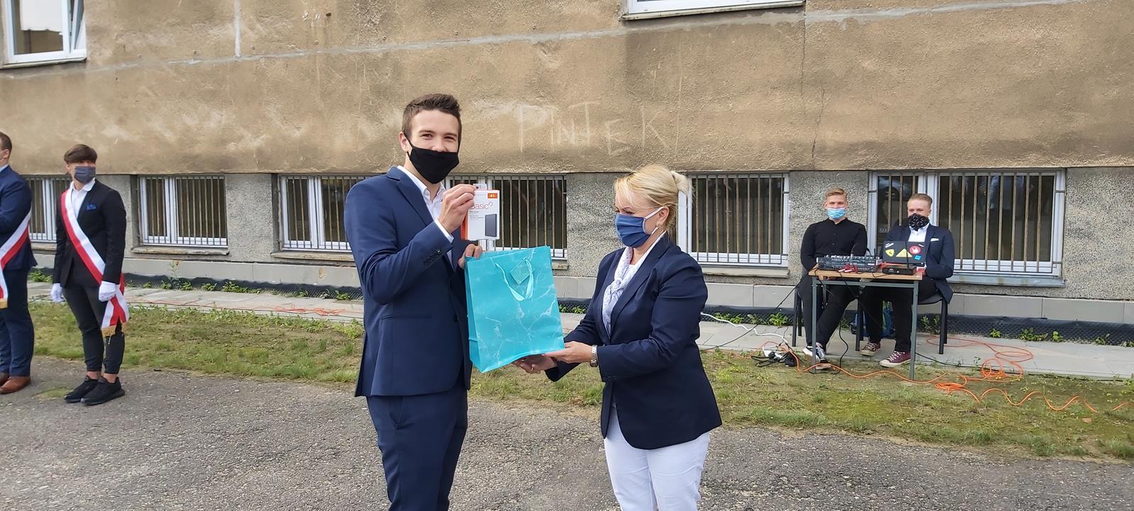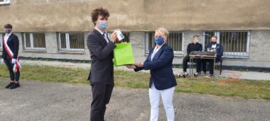 Świadomi zagrożeń związanych z pandemią, ale też pełni radości na spotkanie z dawno niewidzianymi kolegami i nauczycielami rozpoczęliśmy kolejny rok wyzwań edukacyjnych. Od rana po samo południe szkolny dziedziniec wypełniał harmider przybywającej na uroczystość młodzieży. Śmiejące się oczy młodych techników zdradzały ich gotowość do rzucenia się w wir nauki i pasji oraz podjęcia walki o realizację zawodowych marzeń wbrew przeciwnościom losu. Po przemówieniu Pani Dyrektor Małgorzaty Grzemskiej inspirującym do przyjęcia odważnej i odpowiedzialnej postawy uczniowskiej skierowała ona słowa uznania do osób wyróżnionych za zeszłoroczne sukcesy.