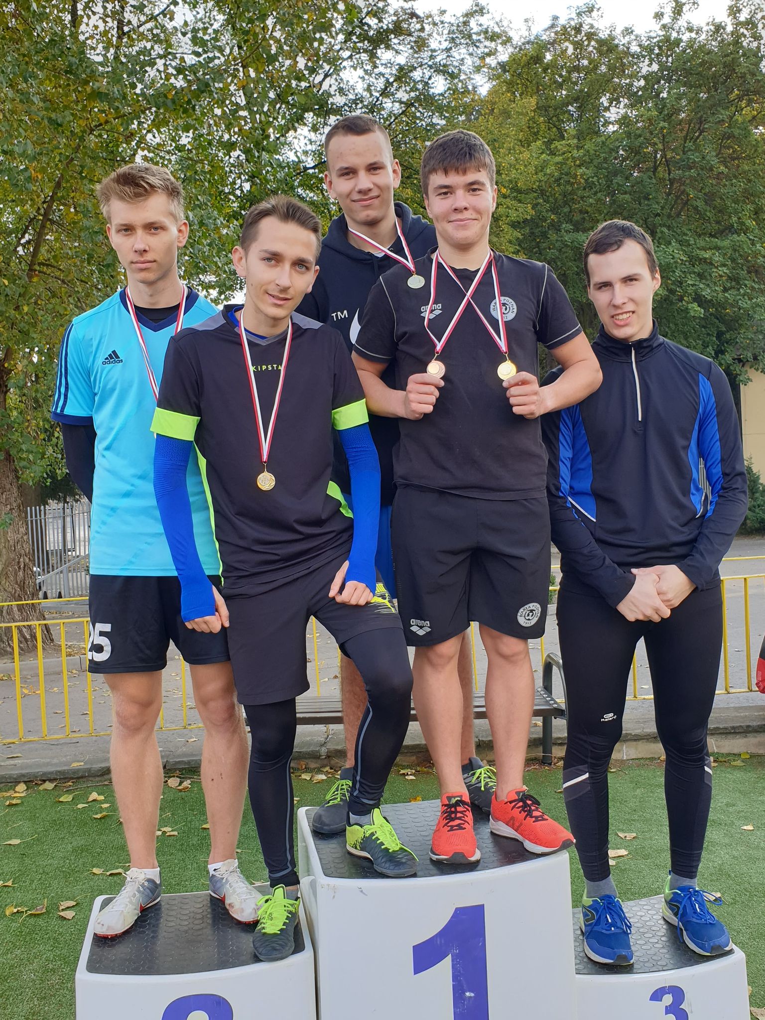 8.10.2020 odbyły się Mistrzostwa Poznania Szkół Średnich w lekkoatletyce. Reprezentanci naszej szkoły uzyskali świetne wyniki, zdobywając trzy medale. Najszybszym na dystansie 100m okazał się Krzysztof Tomczak z 4T3, który w miażdżący sposób rozprawił się z przeciwnikami. Brązowy medal na dystansie 3000m zdobył Dominik Soiński z 2T9. Wisienką na torcie było złoto w biegu sztafetowym 4x100m w składzie Krzysztof Tomczak 4T3, Oskar Pazgrat 2T2, Dominik Soiński oraz Kacper Lewandowski z 2T9. Krzysztof Stróżyk z 1T3 startował w biegu na 200m, Kacper Lewandowski z 2T9 na 400m, Karol Szułcik z 2T9 pobiegł na 800m, Oskar Pazgrat uzyskał 4 miejsce w skoku w dal. W najbliższym czasie poszczególne wyniki będą dostępne na stronie www.mos.poznan.pl