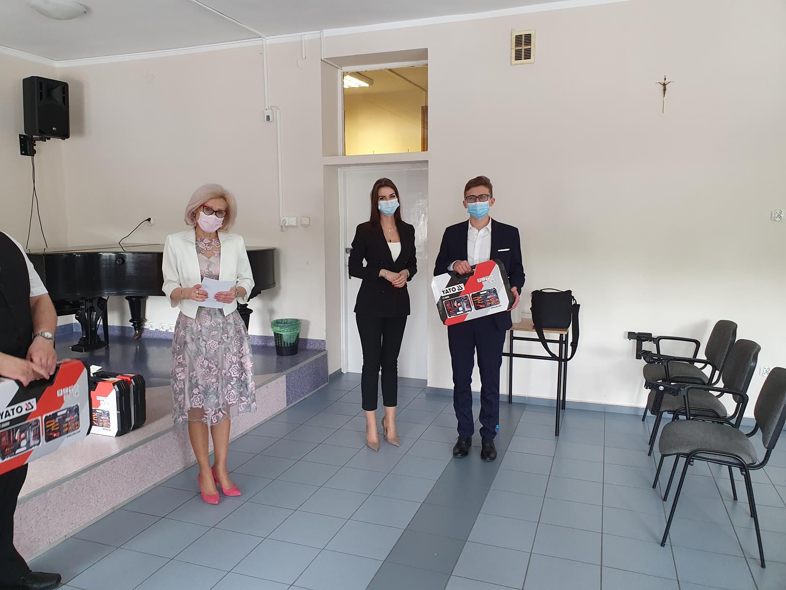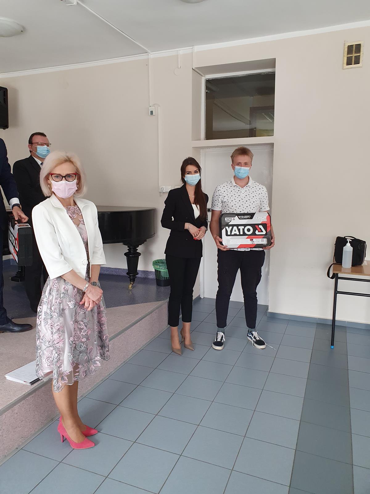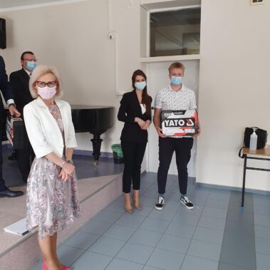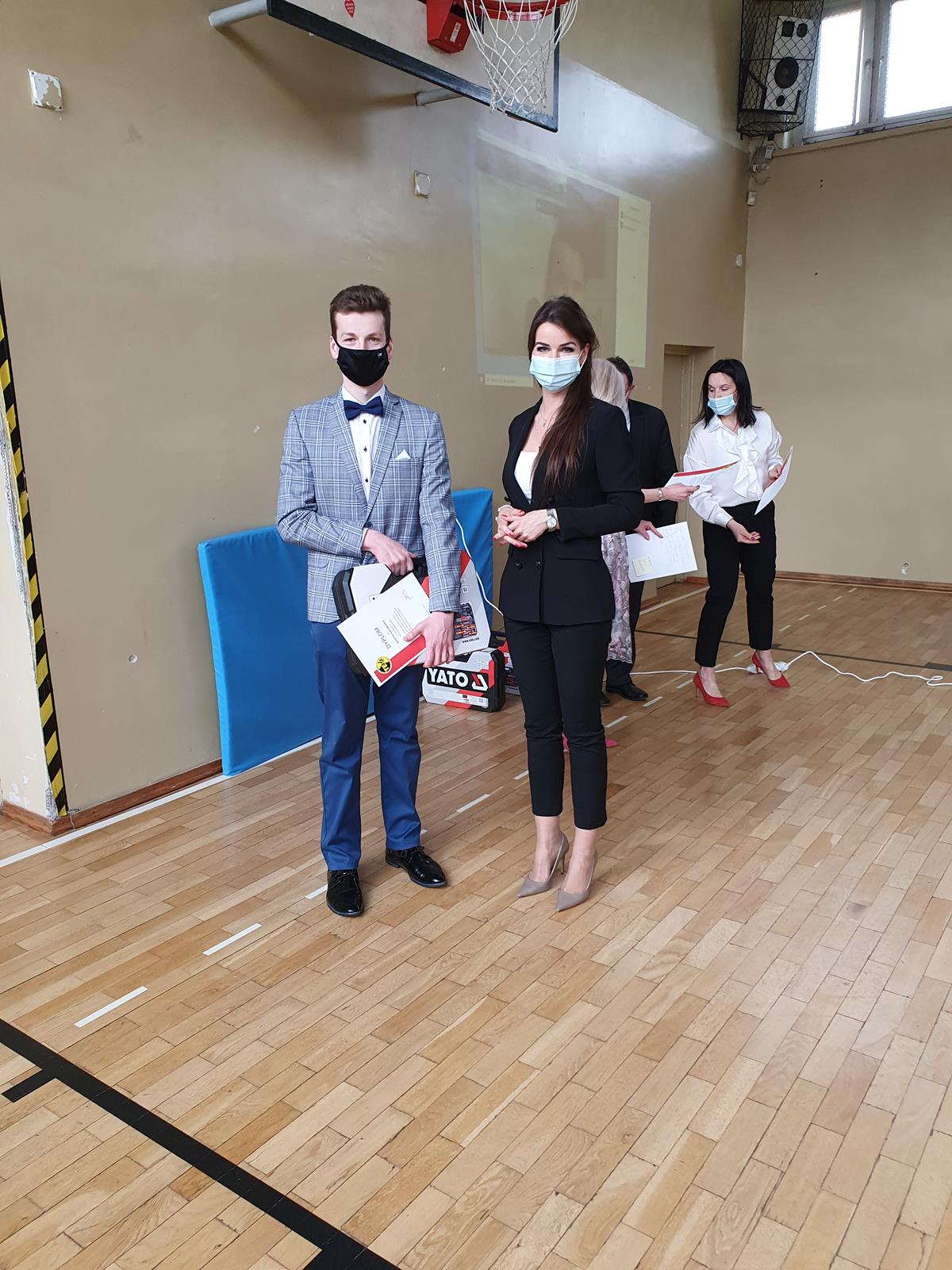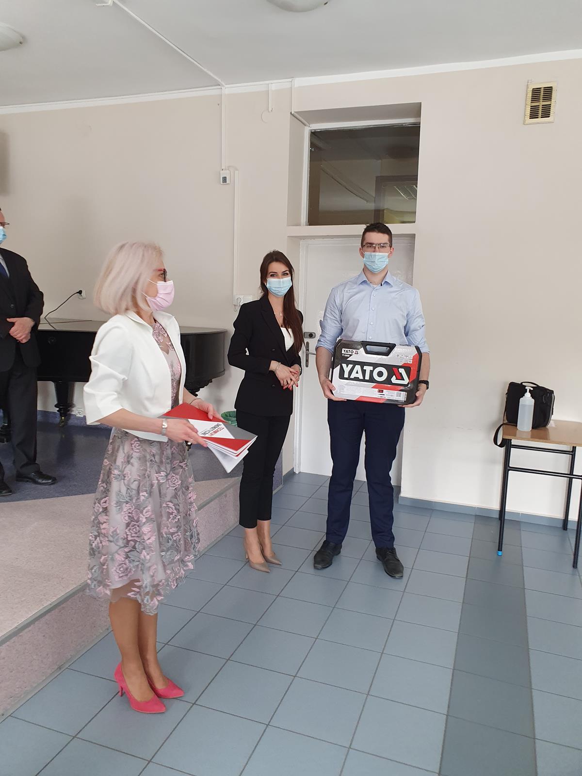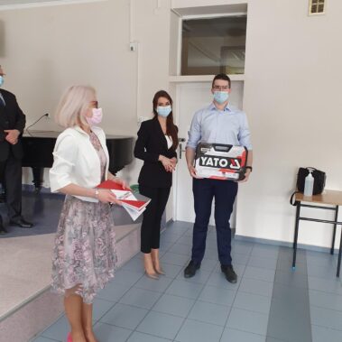 Jak co roku, była to też okazja, by nagrodzić uczniów, którzy na przestrzeni czterech minionych lat osiągnęli najlepsze wyniki w nauce oraz aktywnie zaangażowali się w działania na rzecz Szkoły. Tradycyjnie, absolwenci wyróżniający się nieprzeciętnymi umiejętnościami zawodowymi zostali uhonorowani przez Fundację ENEA nagrodą specjalną. Tym razem w ręce znakomitych zawodowców trafiły zestawy elektronarzędzi firmy YATO. Nagrody wręczyła pani Katarzyna Wiśniewska Kierownik Biura Rekrutacji i Promocji Pracodawcy w Departamencie Rozwoju Zasobów Ludzkich Enea Operator. W ramach podziękowania za aktywność społeczną kilkunastu tegorocznych maturzystów zostało obdarowanych bonami upominkowymi do Komputronika ufundowanymi przez Radę Rodziców oraz biletami do Pyrland Parku Linowego. Poza tym uczniowie z dobrymi ocenami na świadectwie zostali nagrodzeni książkami, a reprezentanci Programu Erasmus + pamiątkowymi dyplomami.