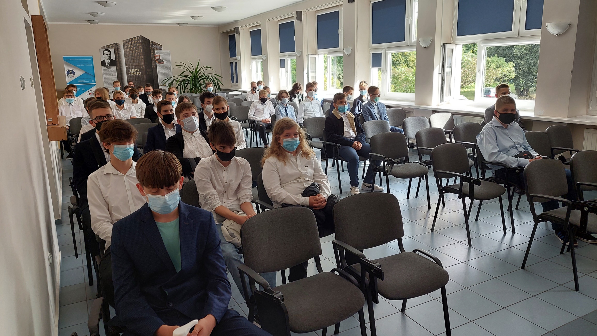 Jak co roku powitaliśmy w naszych progach grono młodych ludzi chcących rozpocząć przygodę z Energetykiem. W przepisowych maseczkach, z zachowaniem dystansu, nieśmiało spoglądali na stojących obok, starając się odgadnąć, z kim będą siedzieć w jednej ławce. Widzieliśmy ich zaciekawione oczy, czuliśmy, że ich głowy są pełne pytań – o nowych kolegów, o wychowawcę, o nauczycieli. Odpowiedzi na pierwsze pytania udzieliła Pani Dyrektor Małgorzata Grzemska, która uroczyście powitała przyszłych techników w sali konferencyjnej. Następnie wszyscy udali się do wyznaczonych sal poznać tych, z którymi spędzą tak wiele godzin przez najbliższe pięć lat.