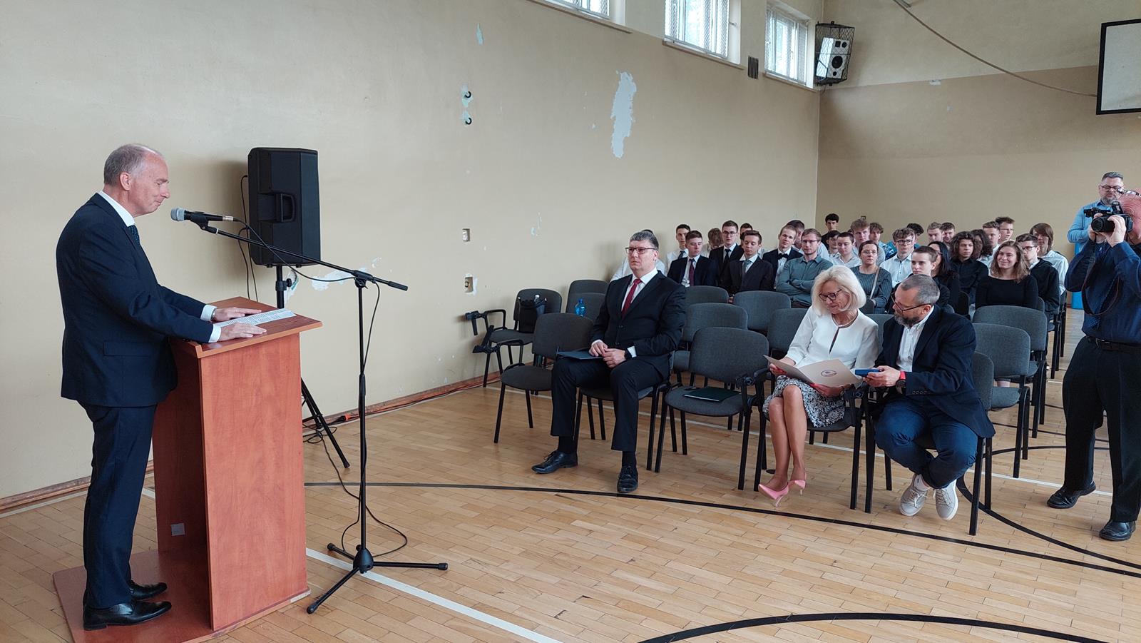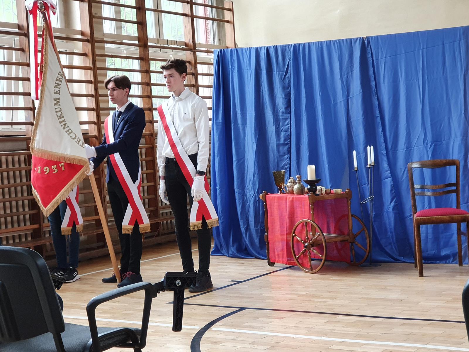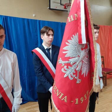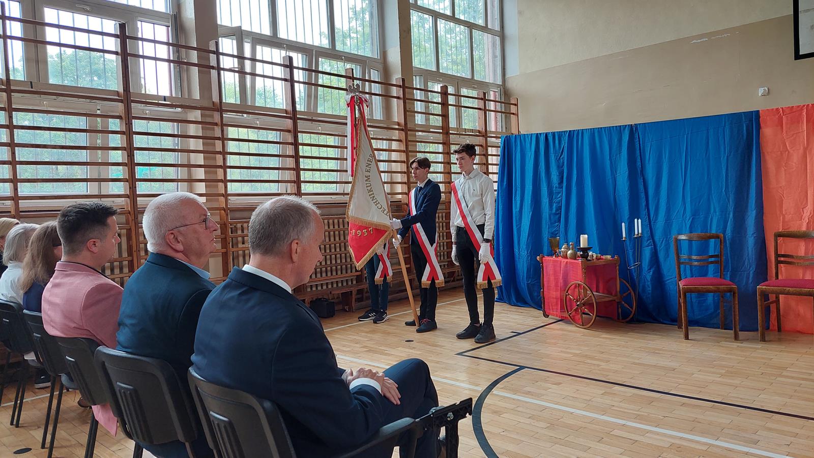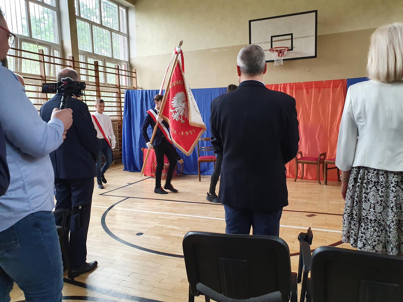 Część oficjalną rozpoczęło wprowadzenie sztandaru i przemówienie Pani Dyrektor , Małgorzaty Grzemskiej, która powitała znamienitych gości, całą społeczność szkolną i przedstawiła zgromadzonym wybitną postać Henryka Zygalskiego.