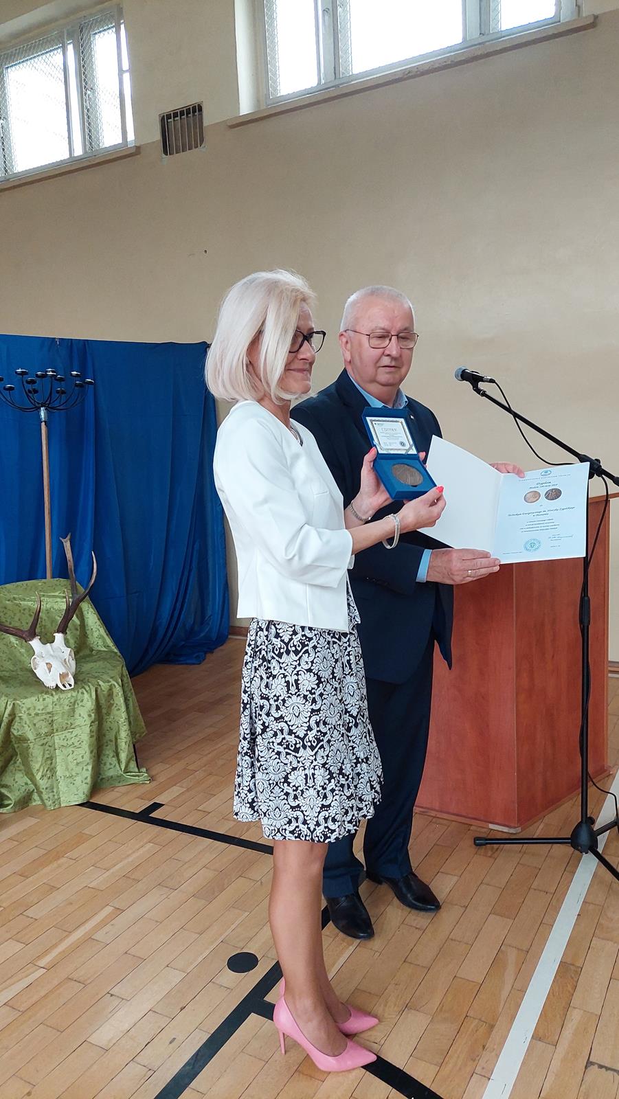 Szczególną chwilę stanowiło wręczenie przez Pana Kazimierza Pawlickiego Medalu 100- lecia SEP, Pani Dyrektor Małgorzacie Grzemskiej. Tego dnia młodzież naszej szkoły wraz z opiekunami udała się pod tablice poświęcone Henrykowi Zygalskiemu i uczciła pamięć patrona symbolicznymi kwiatami i zapalonymi zniczami.