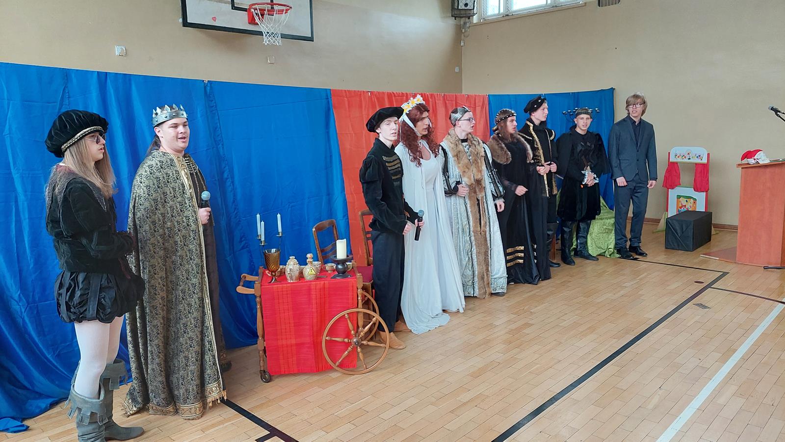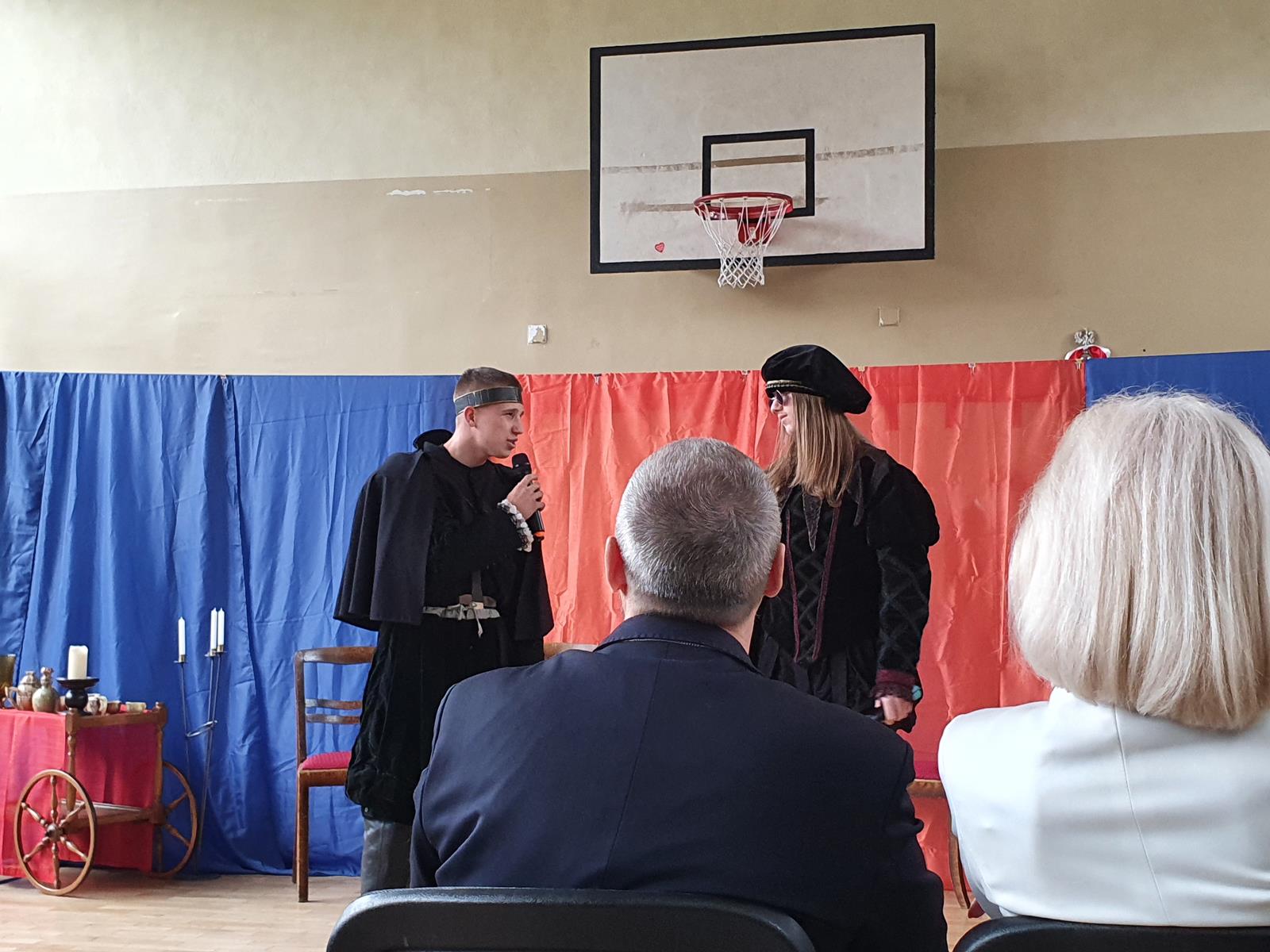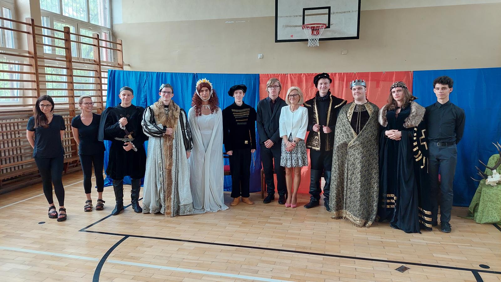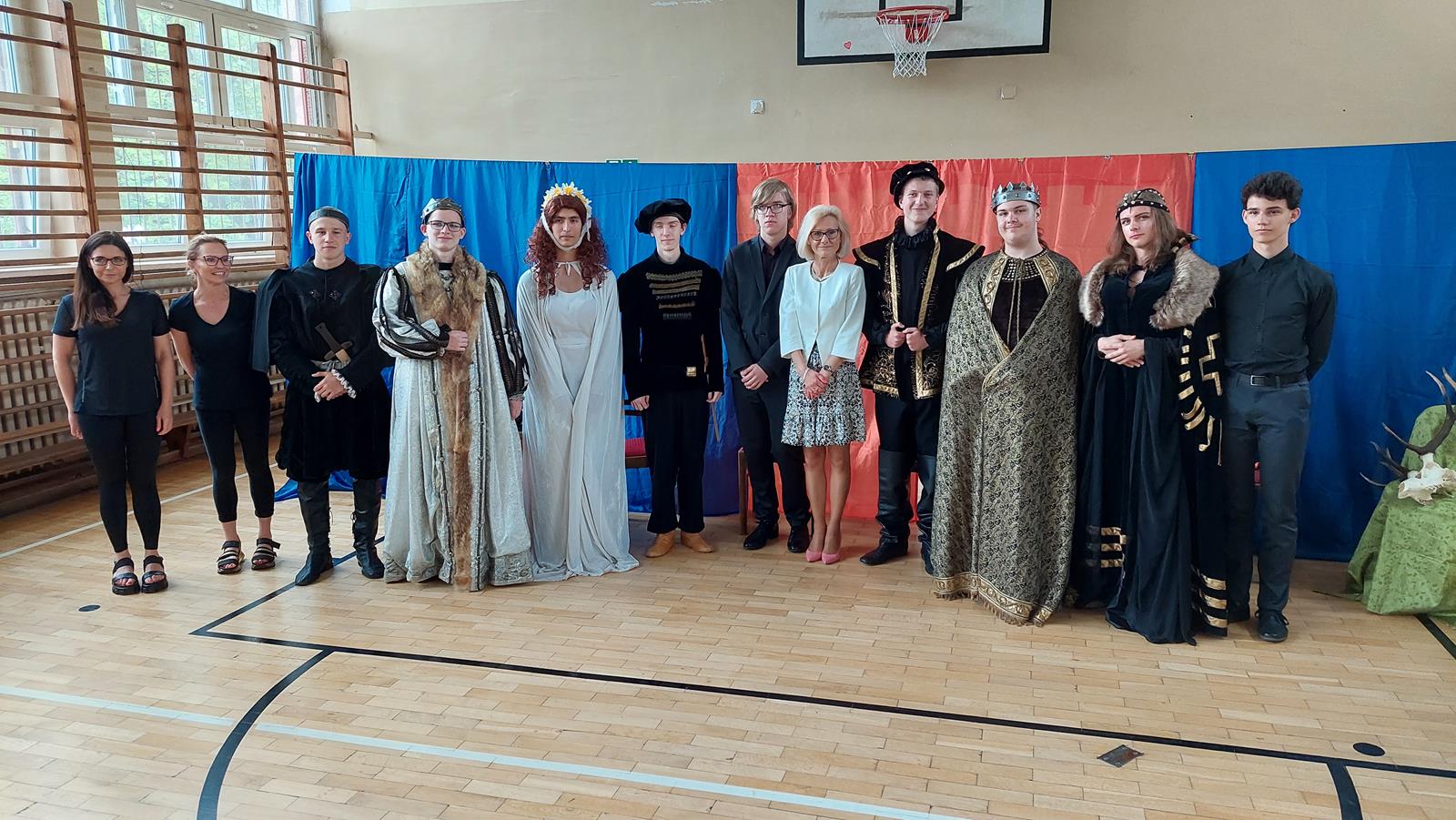 W murach szkoły zagościł szekspirowski bohater …na wesoło . Młodzież zaprezentowała swój talent i zaangażowanie w ,,Trudnych sprawach Hamleta’’. Młodzi aktorzy mieli okazję wystąpić w oryginalnych strojach z przedstawienia ,,Makbet’’, które gościło na scenie poznańskiego Teatru Wielkiego.