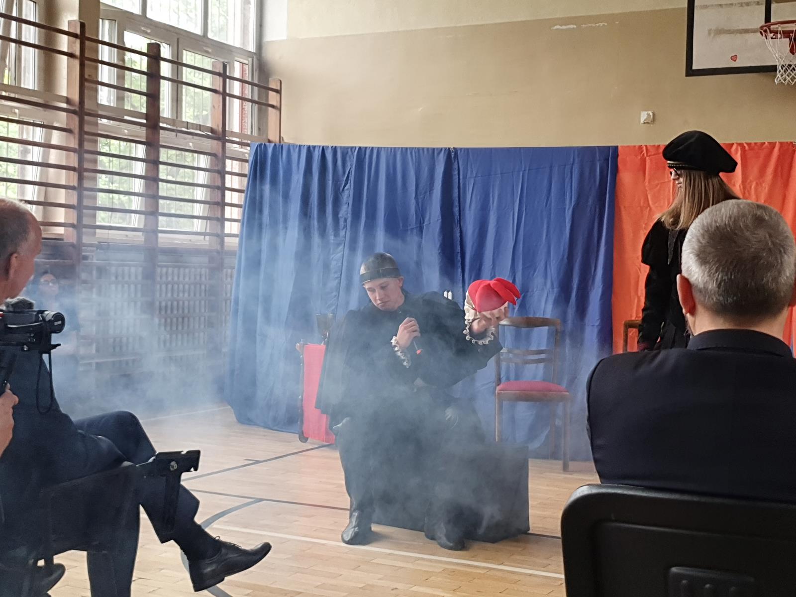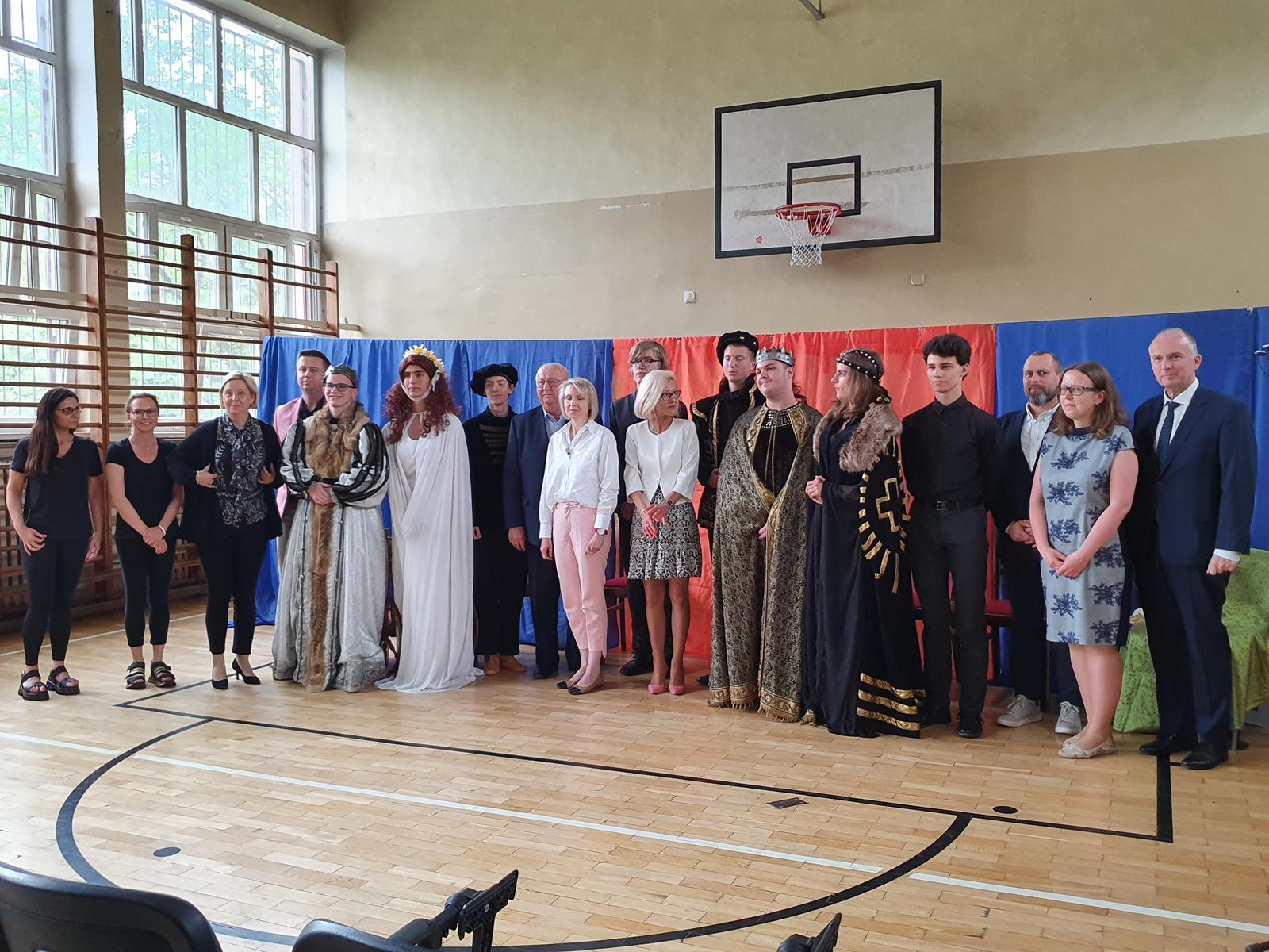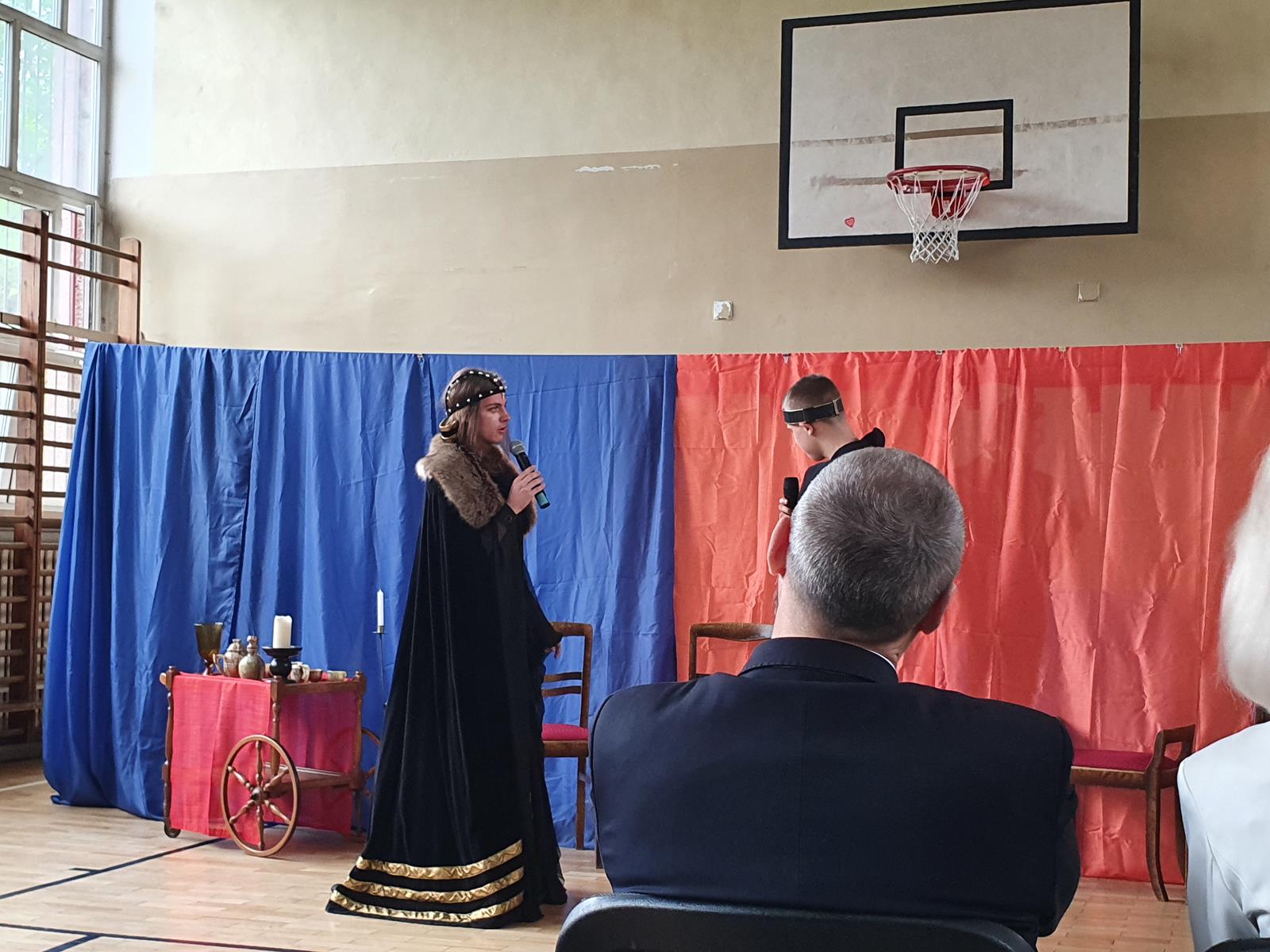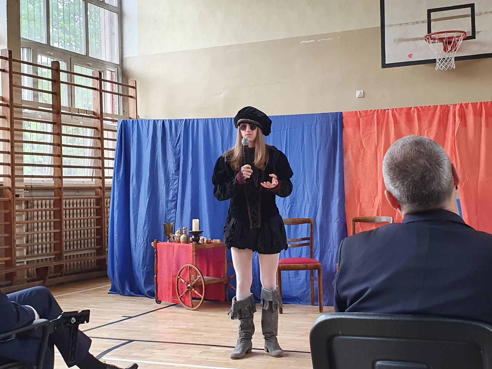 W murach szkoły zagościł szekspirowski bohater …na wesoło . Młodzież zaprezentowała swój talent i zaangażowanie w ,,Trudnych sprawach Hamleta’’. Młodzi aktorzy mieli okazję wystąpić w oryginalnych strojach z przedstawienia ,,Makbet’’, które gościło na scenie poznańskiego Teatru Wielkiego.