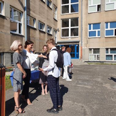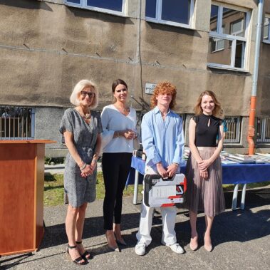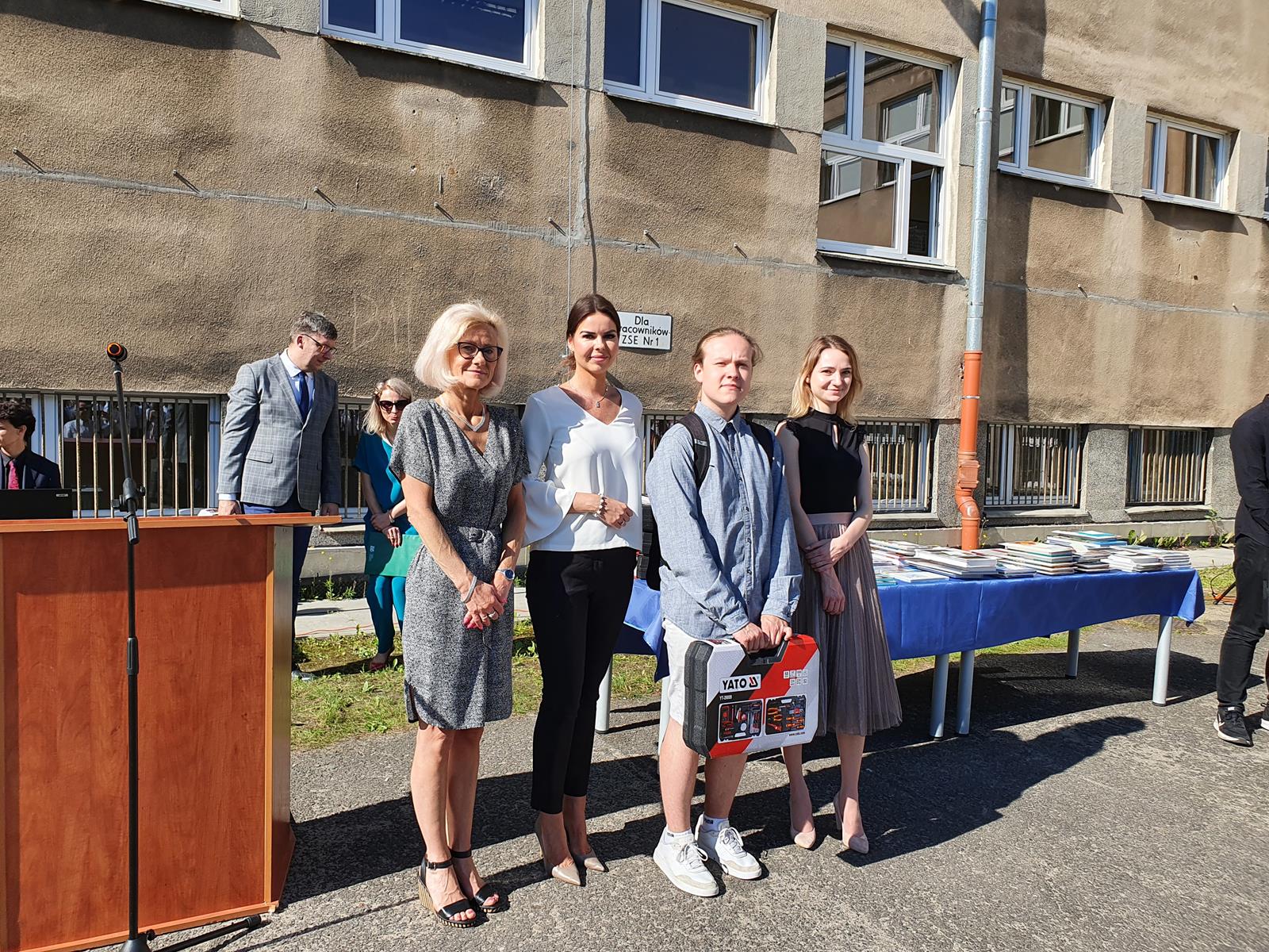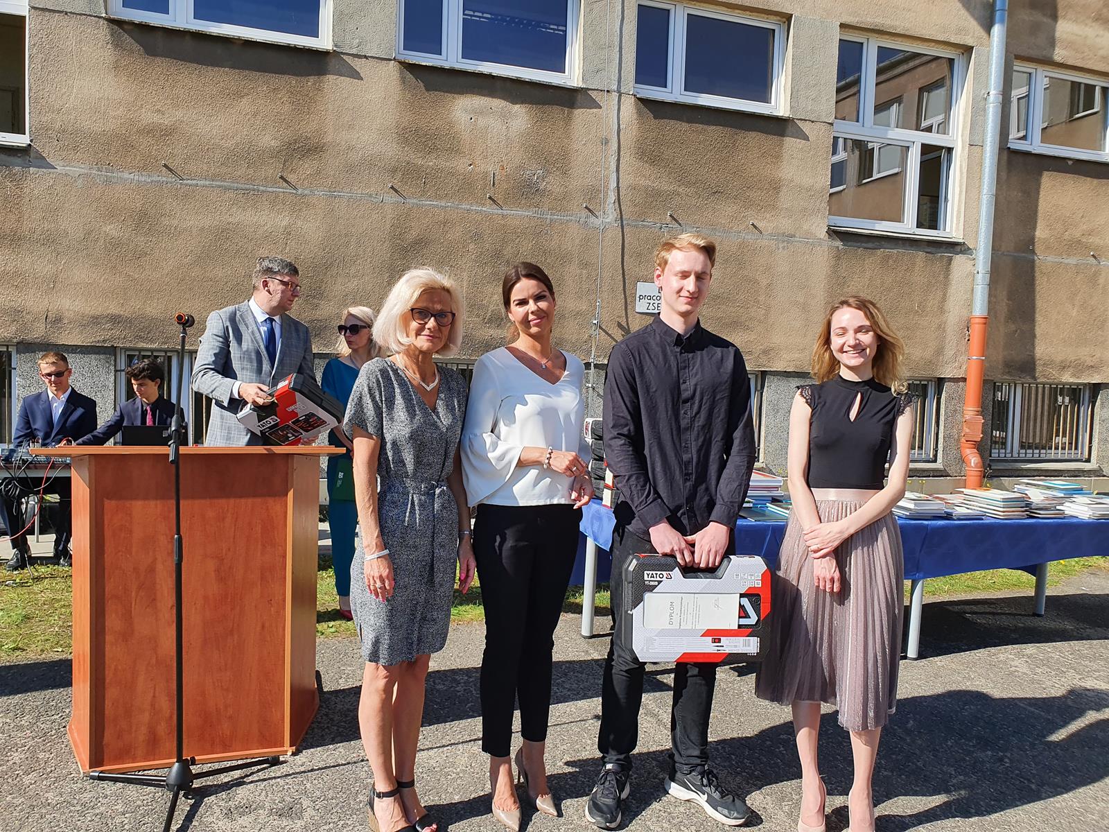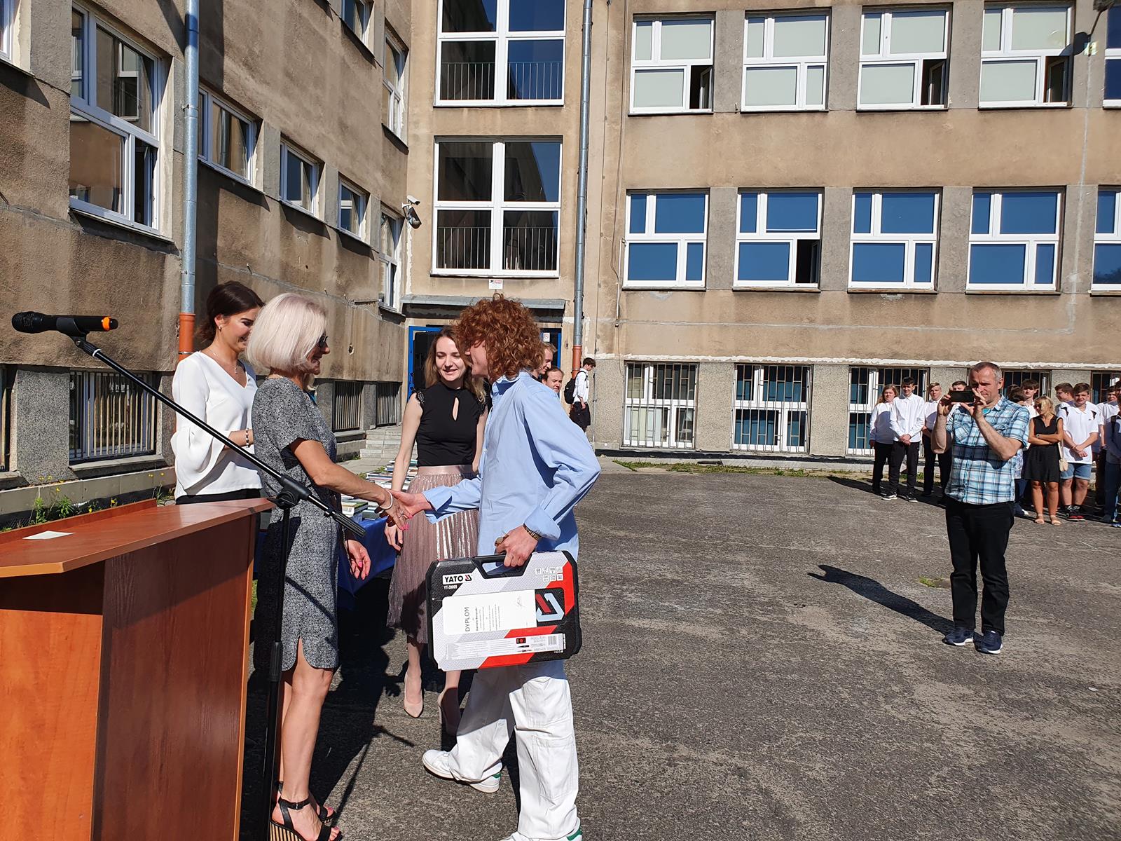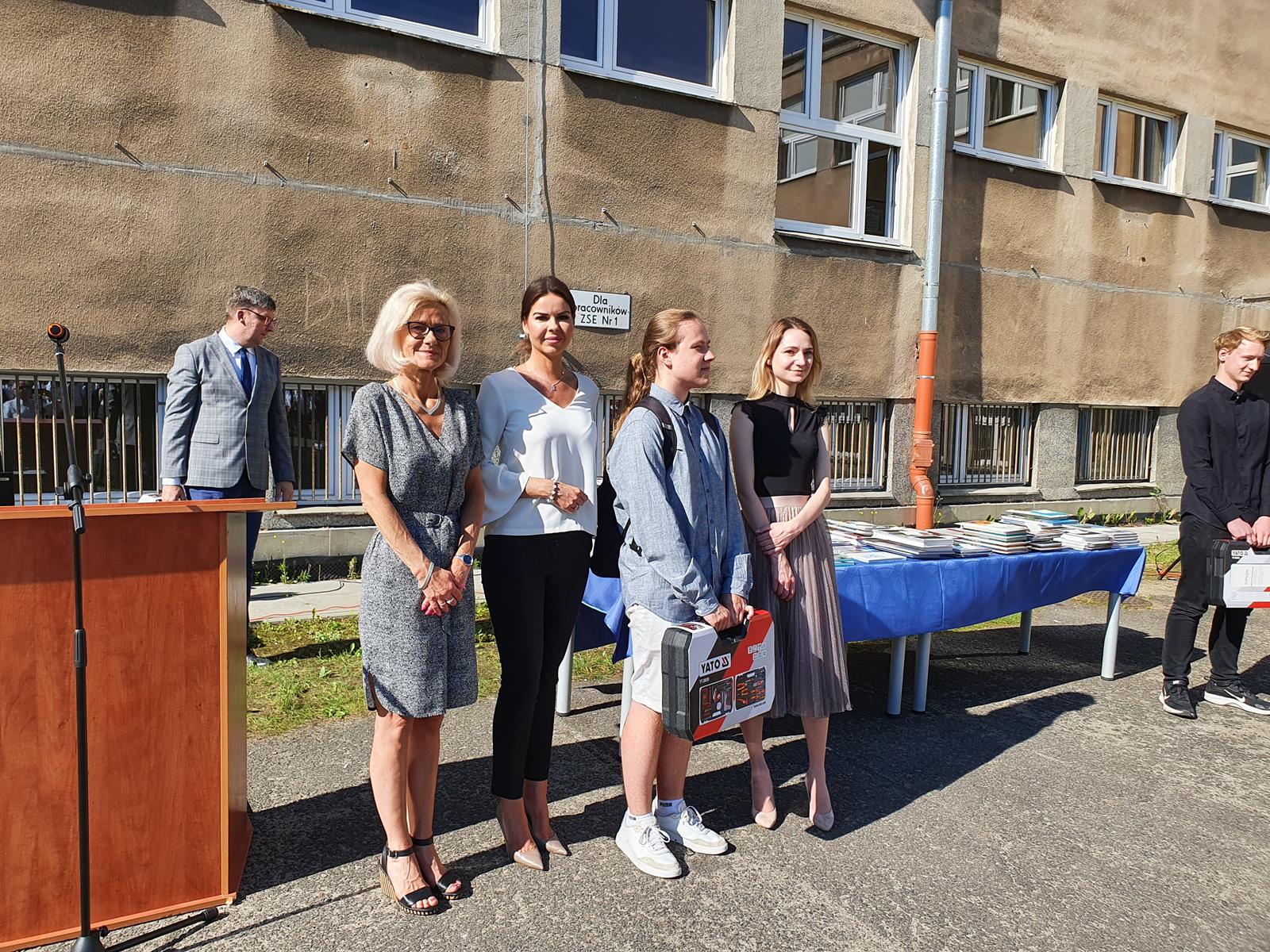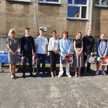 Kończący się rok szkolny to, jak co roku, okazja do radości i refleksji. Mimo trudnych czasów dla nas wszystkich, mijający rok zaowocował wieloma sukcesami i aktywnościami. Świadectwem tego niech pozostanie liczne grono nagrodzonych uczniów, którzy swoje sukcesy zdobywali na różnych polach, bądź to zawodowych, bądź osiągając najlepsze wyniki w nauce. Uczniowie godnie reprezentowali Szkołę uczestnicząc w programie „Trwała pamięć pokoleń” i wyruszając śladami Polaków na kresach. Rozwijali wiedzę z zakresu historii nie tylko tej dawnej, ale i najnowszej – odwiedzając m.in. Westerplatte, Stocznię Gdańsk, uczestnicząc w ważnych uroczystościach rocznicowych upamiętniających istotne wydarzenia dla naszego kraju. Pamiętali o uroczystej oprawie dnia patrona wykazując talenty aktorskie oraz zgłębili tajniki kryptologii odwiedzając Centrum Szyfrów Enigma. W ramach współpracy z Poznańskim Centrum dziedzictwa zrealizowali projekt „Na tropie Enigmy” przygotowując mobilną grę edukacyjną. Z racji zawodowego charakteru Szkoły uczniowie doskonalili umiejętności branżowe angażując się w projekt „Szkoła wodorowa”, czy próbując swych sił na Poligonie Energetycznym w Łagowie. Rozwijali kompetencje kluczowe poprzez udział w projektach unijnych Erasmus +, prowadzonych wspólnie ze szkołami partnerskimi z Portugalii, Włoch, Turcji i Bułgarii. Młodzież często wykazywała się wrażliwością, włączając się w liczne akcje wolontariackie, w tym pomoc uchodźcom z Ukrainy. Pani Dyrektor podkreśliła promowanie Szkoły w środowisku lokalnym, podziękowała Organowi prowadzącemu, firmom patronackim, współpracującym ze Szkołą uczelniom wyższym, Radzie Rodziców za wspieranie przedsięwzięć naszego Technikum. Zwieńczeniem uroczystości było rozdanie nagród, w tym tych specjalnych zasponsorowanych przez Fundację ENEA. Wręczyły je: pani Katarzyna Wiśniewska, Kierownik Biura Rekrutacji i Promocji Pracodawcy w Departamencie Rozwoju Zasobów Ludzkich Enea Operator oraz pani Klaudia Strzelecka – Kierownik Biura Promocji Pracodawcy Enea S.A. Gratulujemy wszystkim nagrodzonym!