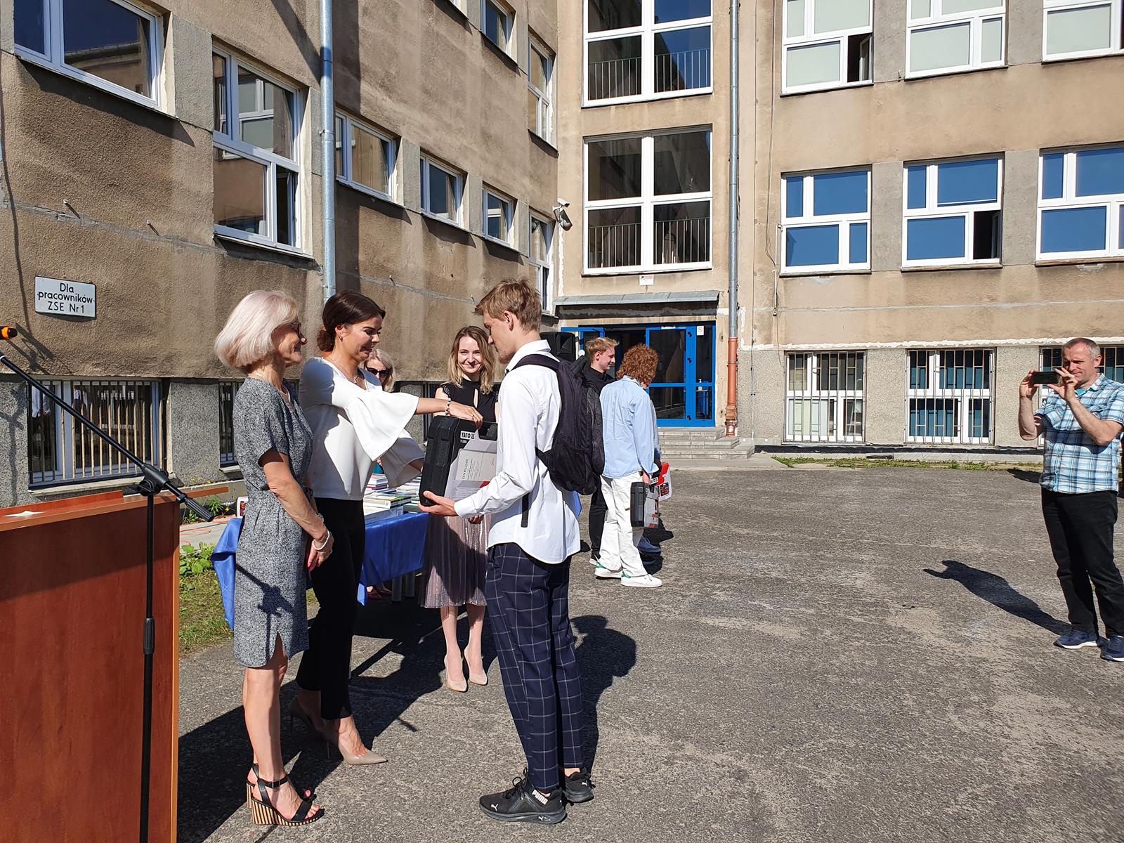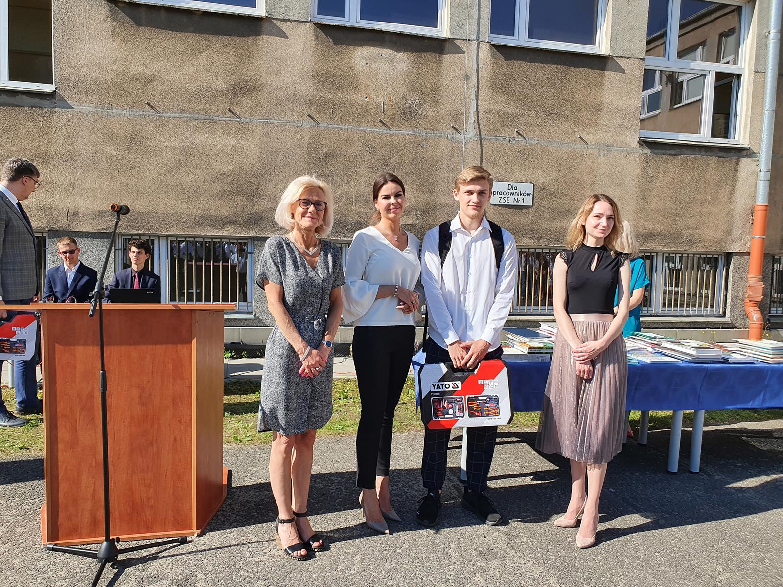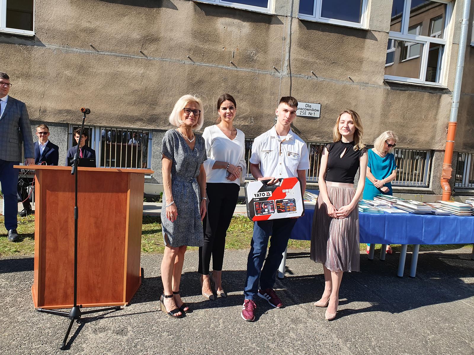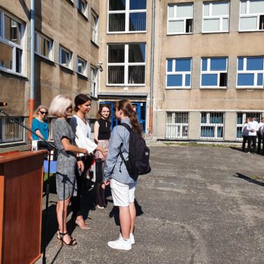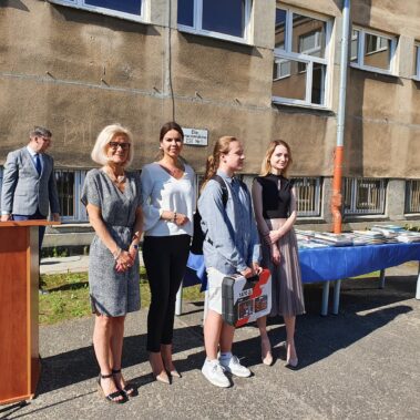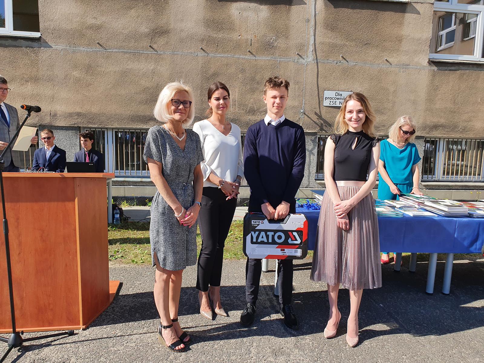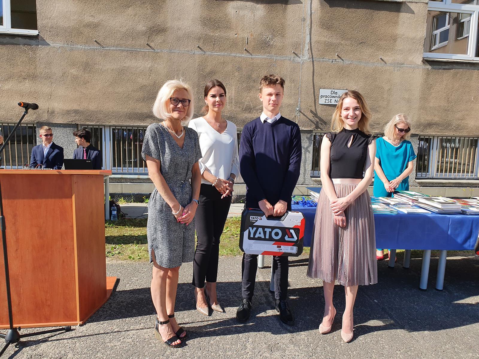 Kończący się rok szkolny to, jak co roku, okazja do radości i refleksji. Mimo trudnych czasów dla nas wszystkich, mijający rok zaowocował wieloma sukcesami i aktywnościami. Świadectwem tego niech pozostanie liczne grono nagrodzonych uczniów, którzy swoje sukcesy zdobywali na różnych polach, bądź to zawodowych, bądź osiągając najlepsze wyniki w nauce. Uczniowie godnie reprezentowali Szkołę uczestnicząc w programie „Trwała pamięć pokoleń” i wyruszając śladami Polaków na kresach. Rozwijali wiedzę z zakresu historii nie tylko tej dawnej, ale i najnowszej – odwiedzając m.in. Westerplatte, Stocznię Gdańsk, uczestnicząc w ważnych uroczystościach rocznicowych upamiętniających istotne wydarzenia dla naszego kraju. Pamiętali o uroczystej oprawie dnia patrona wykazując talenty aktorskie oraz zgłębili tajniki kryptologii odwiedzając Centrum Szyfrów Enigma. W ramach współpracy z Poznańskim Centrum dziedzictwa zrealizowali projekt „Na tropie Enigmy” przygotowując mobilną grę edukacyjną. Z racji zawodowego charakteru Szkoły uczniowie doskonalili umiejętności branżowe angażując się w projekt „Szkoła wodorowa”, czy próbując swych sił na Poligonie Energetycznym w Łagowie. Rozwijali kompetencje kluczowe poprzez udział w projektach unijnych Erasmus +, prowadzonych wspólnie ze szkołami partnerskimi z Portugalii, Włoch, Turcji i Bułgarii. Młodzież często wykazywała się wrażliwością, włączając się w liczne akcje wolontariackie, w tym pomoc uchodźcom z Ukrainy. Pani Dyrektor podkreśliła promowanie Szkoły w środowisku lokalnym, podziękowała Organowi prowadzącemu, firmom patronackim, współpracującym ze Szkołą uczelniom wyższym, Radzie Rodziców za wspieranie przedsięwzięć naszego Technikum. Zwieńczeniem uroczystości było rozdanie nagród, w tym tych specjalnych zasponsorowanych przez Fundację ENEA. Wręczyły je: pani Katarzyna Wiśniewska, Kierownik Biura Rekrutacji i Promocji Pracodawcy w Departamencie Rozwoju Zasobów Ludzkich Enea Operator oraz pani Klaudia Strzelecka – Kierownik Biura Promocji Pracodawcy Enea S.A. Gratulujemy wszystkim nagrodzonym!