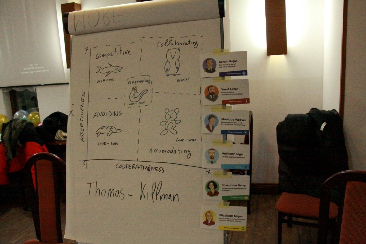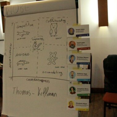 Po prezentacjach poszczególnych grup jako podsumowanie uczestnicy rozwiązywali test, którego celem było określenie jaką postawę przyjmują podczas rozwiązywania konfliktów: dążenia do zwycięstwa za wszelką cenę, współpracy, kompromisu, stawiania potrzeb innych ponad nasze i ucieczki. Każda z tych postaw ma zalety i wady i zależnie od sytuacji pozwoli osiągnąć inne cele.
