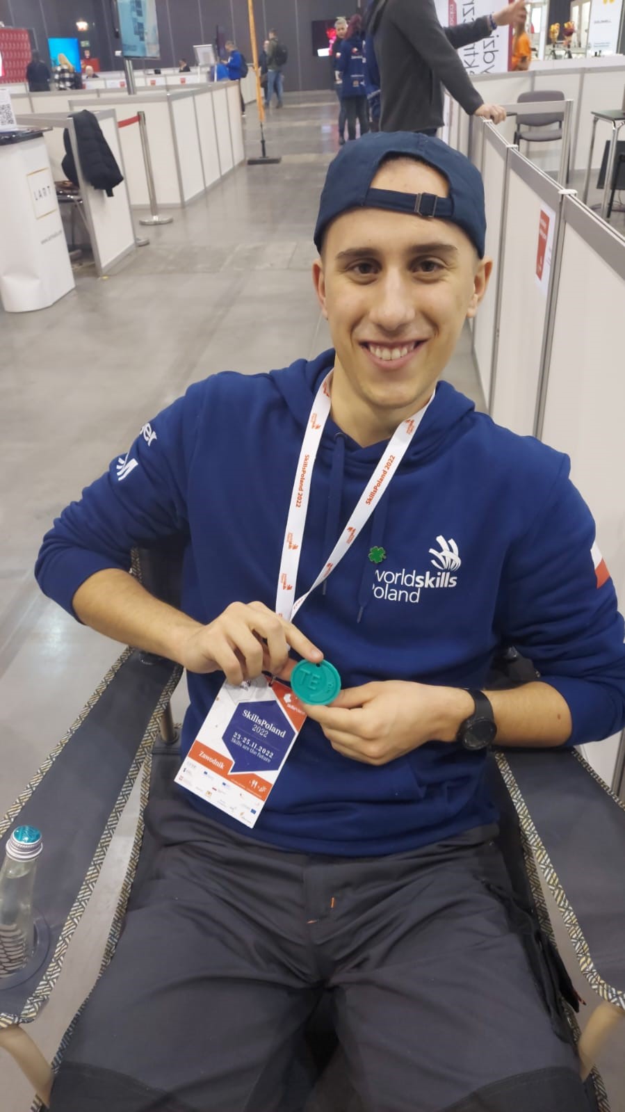 22-25.11.2022 udział w finałach ogólnopolskich tegorocznej edycji turnieju Skills Poland. Piotr Winger z oddziału 4T4 zakwalifikował się do finału w kategorii instalacje elektryczne jako jedna z 5 osób z całej Polski. Nasz reprezentant podjął niełatwą walkę z dokumentacją techniczną, montażem instalacji, wykonaniem pomiarów i programowaniem sterowników. Walczył dzielnie, ale niestety nie udało mu się pokonać rywali i zdobyć przepustki do reprezentowania Polski na szczeblu europejskim. Niemniej to ogromny sukces, wszyscy jesteśmy z niego bardzo dumni! Nie można w tym miejscu nie wspomnieć o fantastycznym zapleczu – nauczycielach, którzy pomagali Piotrowi przygotować się na ten turniej – p. Kacprowi Jaszczakowi (zorganizował sprzęt niezbędny do wyposażenia stanowiska do treningów oraz był opiekunem Piotra podczas finału), p. Marka Kubiaka i p. Mariusza Gawrona – panowie pomogli Piotrowi opanować podstawy programowania sterowników i innych elementów automatyki. Wszystkim serdecznie dziękuję za współpracę, a Piotrowi jeszcze raz gratulujemy!