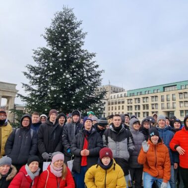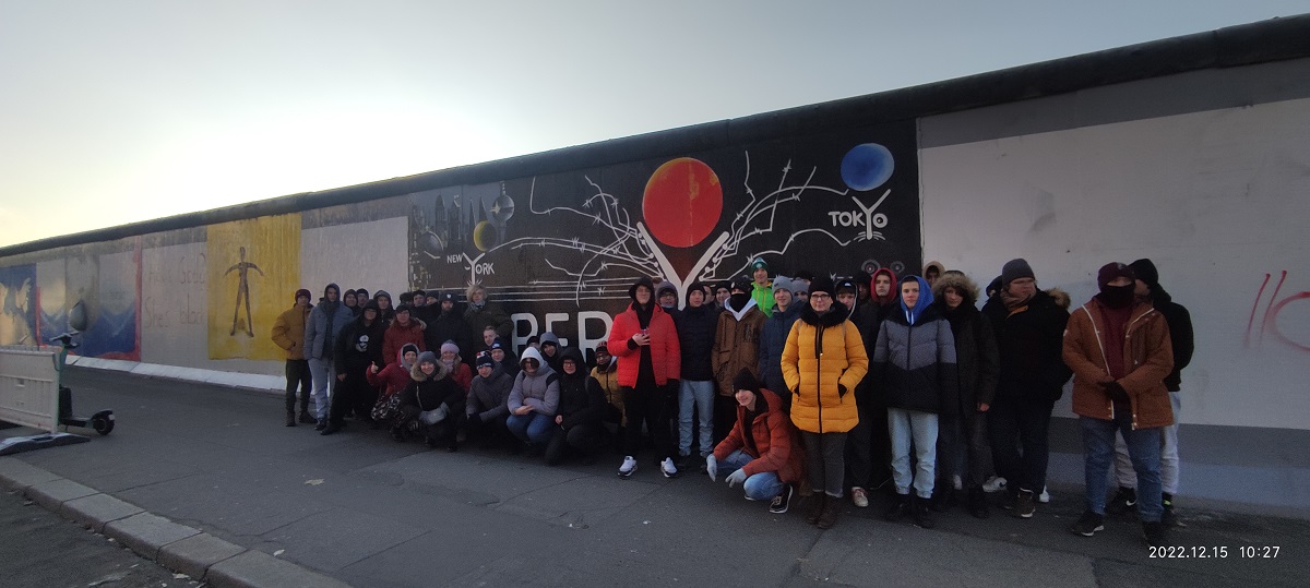 15 grudnia nasi uczniowie razem z nauczycielami udali się na jednodniową wycieczkę do Berlina. Zwiedzanie rozpoczęli od Muru Berlińskiego. Następnie udali się na Alexanderplatz ze słynną Wieżą Telewizyjną (Berliner Fernsehturm), Czerwonym Ratuszem (Rotes Rathaus), Fontanną Neptuna i renesansową Katedrą Berlińską (Berliner Dom). Sprzyjająca aura zachęciła do spaceru Aleją Lipową (Unter den Linden), gdzie wszyscy podziwiali Humbolt Universität, na którym wykładał sam Albert Einstein. Nadarzyła też okazja, żeby zobaczyć jeszcze w budowie polską ambasadę. Po tak długim spacerze była chwila na sesję zdjęciową przy Bramie Brandenburskiej. Następnie wszyscy udali się pod Pomnik Ofiar Holokaustu, który składa się z ponad 2 tys. betonowych płyt. Kolejnym punktem programu było Muzeum Techniki z jego częścią doświadczalną i niezliczonymi zbiorami. Była też chwila na słynnym Ku’dammie – gdzie odbywał się tradycyjny Jarmark Bożonarodzeniowy. Ku’damm słynie z licznych sklepów, kafejek, ale również z Europa Center z zegarem wodnym. Była też możliwość zrobienia słodkich zakupów na Święta w sklepie Ritter Sport.