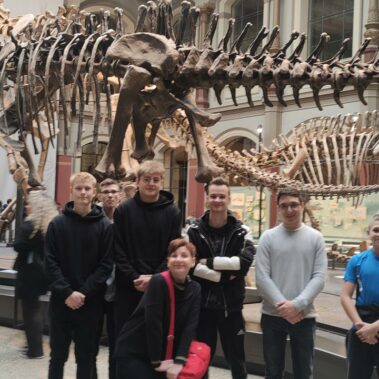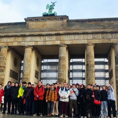 12 grudnia nasi uczniowie razem z nauczycielami udali się na jednodniową wycieczkę do Berlina. Zwiedzanie rozpoczęli od pójścia do Muzeum Historii Naturalnej (niem. Museum für Naturkunde), pierwsze państwowe muzeum na świecie. W swoich zbiorach posiada kolekcję ponad 30 milionów eksponatów zoologicznych, paleontologicznych, mineralogicznych. Najbardziej znanymi eksponatami są: największy zrekonstruowany i złożony szkielet dinozaura na świecie oraz najlepiej zachowany, skamieniały okaz wczesnego ptaka z rodzaju Archaeopteryx. Następnie uczniowie udali się na zwiedzanie Berlina. Wszyscy mieli okazję zobaczyć najważniejsze punkty Berlina: Alexanderplatz ze słynną Wieżą Telewizyjną (Berliner Fernsehturm), Czerwonym Ratuszem (Rotes Rathaus), Fontanną Neptuna i renesansową Katedrą Berlińską (Berliner Dom). Była również chwila na sesję zdjęciową przy Bramie Brandenburskiej. Następnie wszyscy udali się pod Pomnik Ofiar Holokaustu, który składa się z ponad 2 tys. betonowych płyt. Była też chwila na słynnym Ku’dammie – gdzie odbywał się tradycyjny Jarmark Bożonarodzeniowy. Ku’damm słynie z licznych sklepów, kafejek, ale również z Europa Center z zegarem wodnym. Była też możliwość zrobienia słodkich zakupów na Święta w sklepie Ritter Sport.