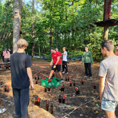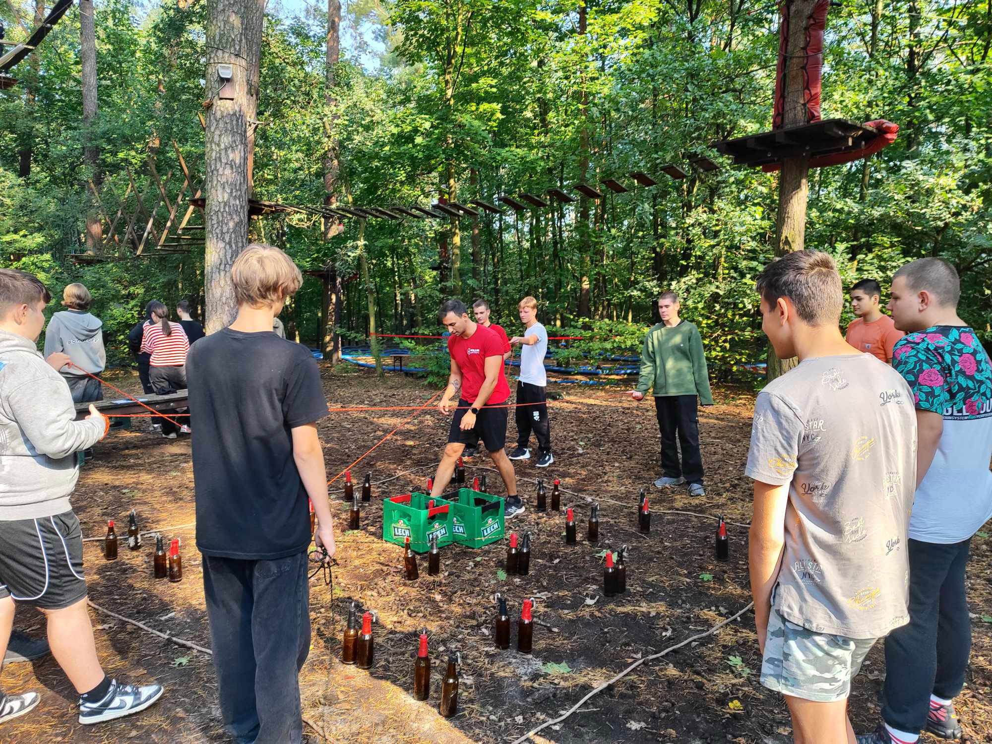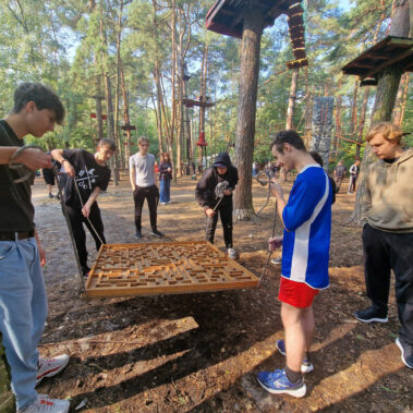 17 września 2024 r. oddziały pierwsze TE wraz z wychowawcami, psychologiem i pedagogami spotkały się w Parku Linowym „Pyrland” przy poznańskiej Malcie. Uczniowie podzielili się na kilkuosobowe zespoły, w których współpracowali w przygotowanych wyzwaniach i zdobywali kolejne punkty. Najwięcej zdobyła drużyna „Niepokonanych”, zaraz za nimi byli „Zwycięzcy”, jednak pozostałe drużyny, w tym: „Żywic”, „Sedesów” czy „Bułeczek Balcerzaka” dorównywały w energii, zaangażowaniu i dobrym humorze.