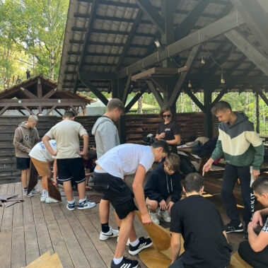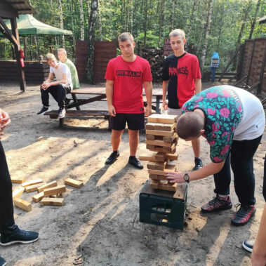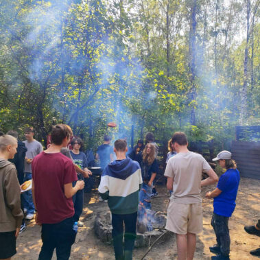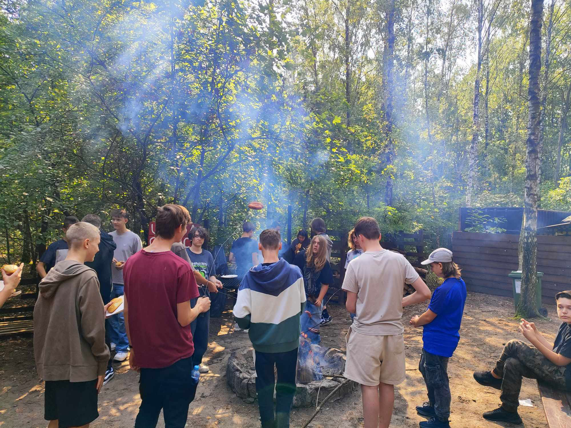 Potem był czas na pieczenie kiełbasek przy ognisku, rozmów, gier i korzystania z trasy linowej.