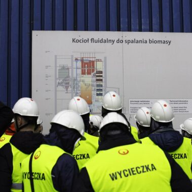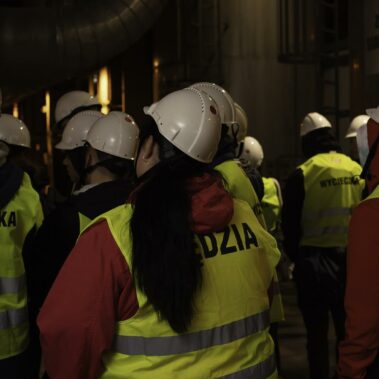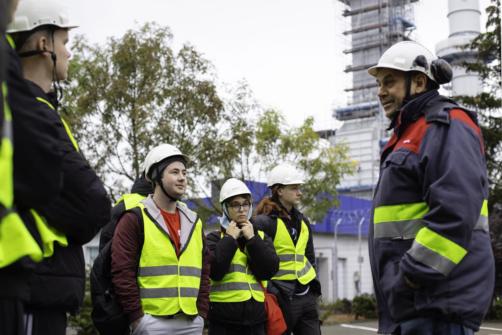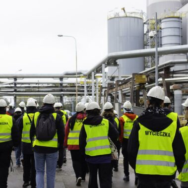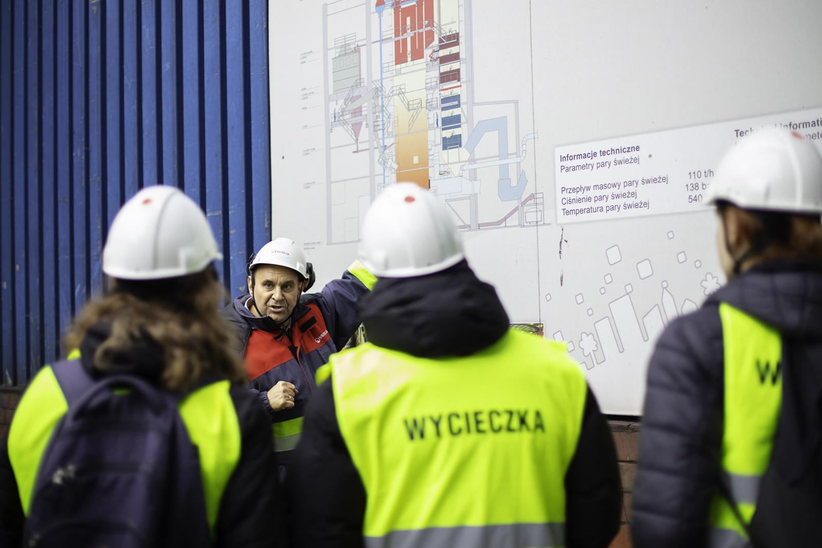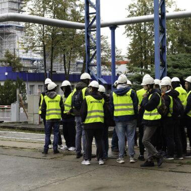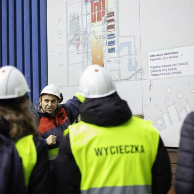 Jesień to czas, kiedy temperatura za oknem spada, więc rozglądamy się za jakimś ogrzewaniem. W Poznaniu ponad 2/3 miasta ogrzewane jest z jednego źródła – Elektrociepłowni Karolin zarządzanej przez firmę Veolia Energia Poznań S.A. Energetycy i elektrycy z oddziałów 4 postanowili przyjrzeć się temu procesowi z bliska i odwiedzili teren elektrociepłowni na początku października. Niezawodny przewodnik – Pan Adam Grzezierski poprowadził grupę od miejsca przybycia i rozładunku węgla, poprzez system transportu i przygotowania węgla do spalania, aż po zagospodarowanie odpadów po spaleniu i oczyszczaniu spalin. Na własne oczy uczniowie zobaczyli, z którego miejsca rozprowadzana jest gorąca woda ogrzewająca ich domy oraz energia elektryczna napędzająca wszystkie urządzenia.
