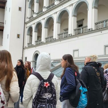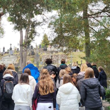 Na początku października, w ramach współpracy ze Stowarzyszeniem MEMORAMUS, grupa naszych uczniów wzięła udział w wyprawie na Litwę. Wybrani uczestnicy z siedmiu poznańskich szkół średnich jak co roku podróżuje odwiedzając miejsca istotne w historii naszego kraju. Wszak Litwa, będąca do zaborów częścią Rzeczypospolitej w ramach Unii, do obowiązkowych celów tych wędrówek należy. Gdzie oprócz wspaniałych zabytków sakralnych, Uniwersytetu im. Stefana Batorego (alma mater wielu wybitnych synów naszych narodów), mogliśmy podążać śladami naszego wspólnego wieszcza – Adama Mickiewicza. W celi tego ostatniego, miejscach, w których przebywał, mogliśmy dotknąć żywej historii.