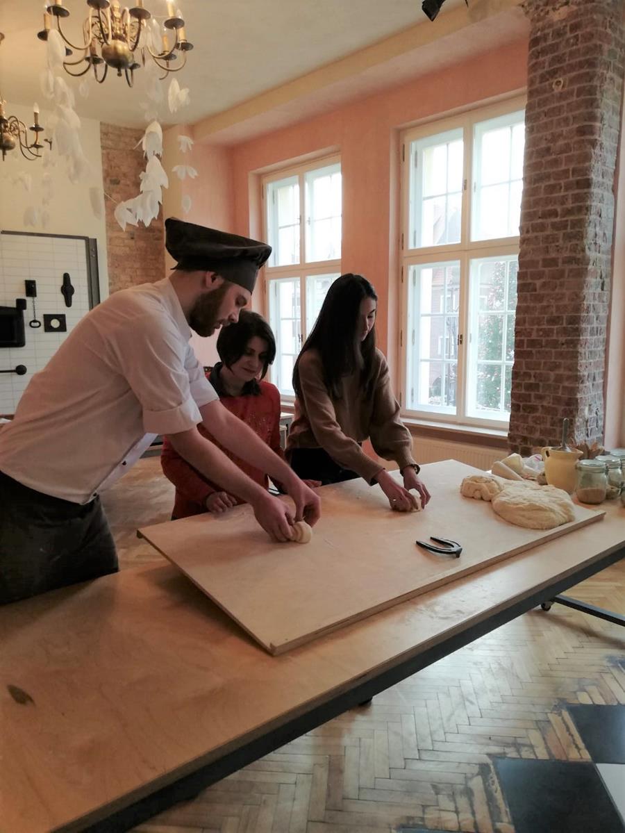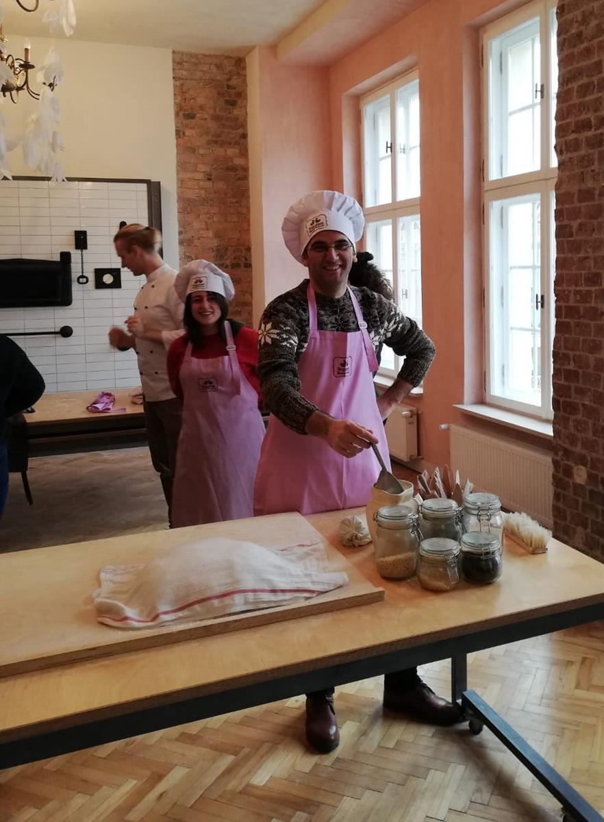 Ważnym elementem każdego spotkania projektowego jest poznanie kuchni regionalnej. Naszym gościom najbardziej przypadły do gustu pierogi i rogale świętomarcińskie.